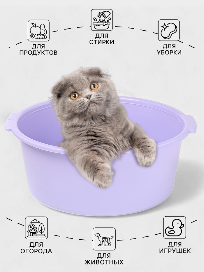 Таз хозяйственный круглый, 10 л, 37×35×14.5 см, фиалковый