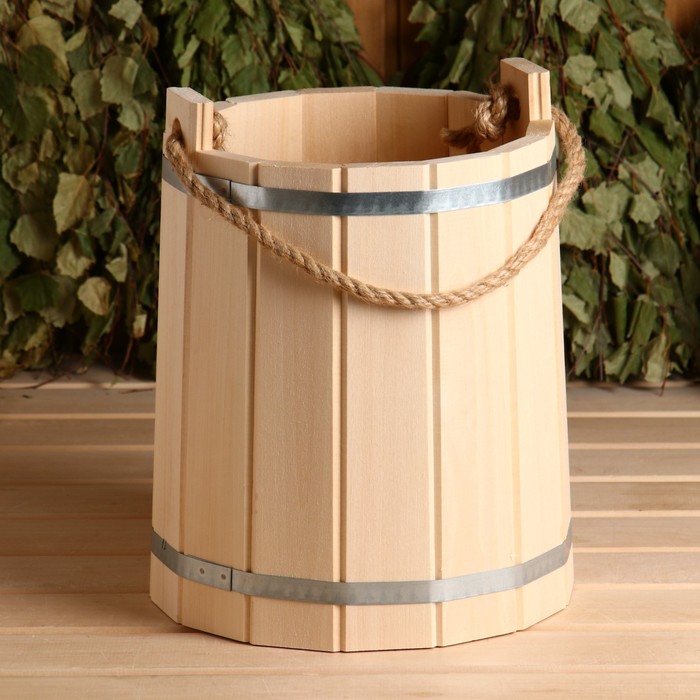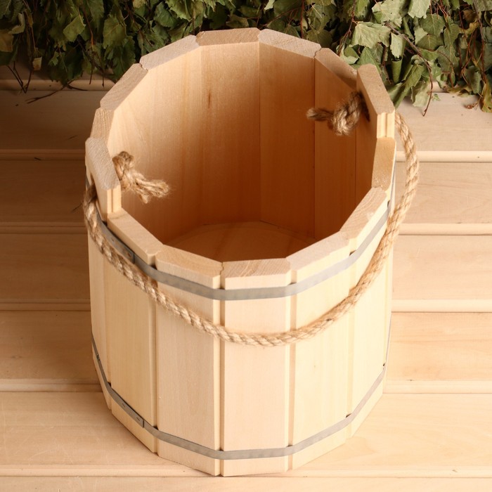 Ведро для бани и сауны, 10 л, 34×29×29 см, липа, нержавеющий обруч, «Добропаровъ»
