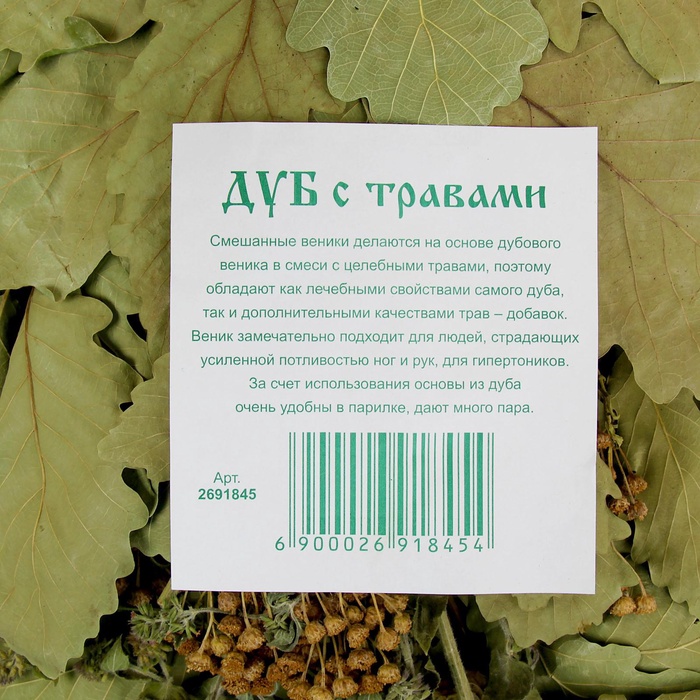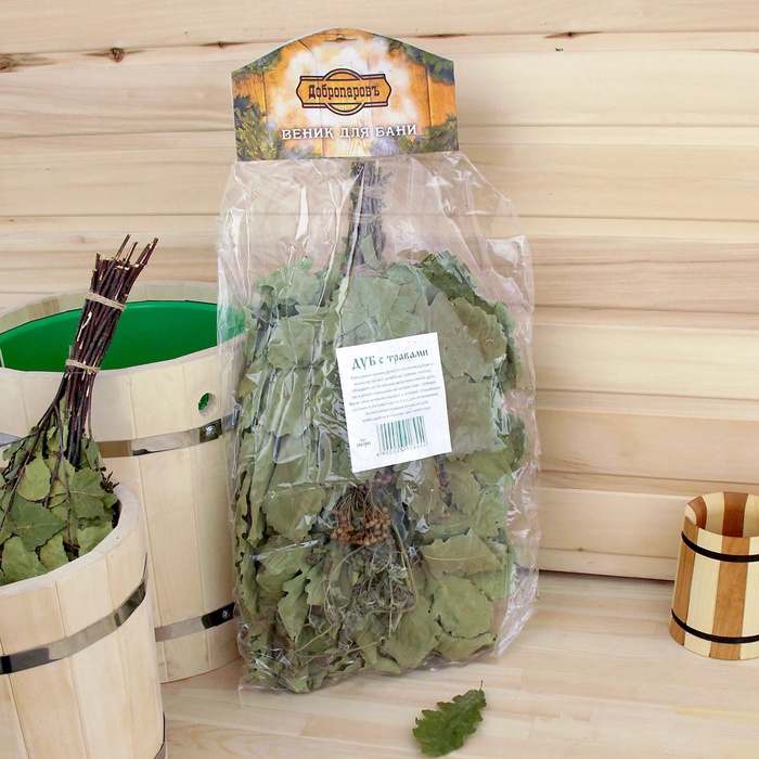 Веник для бани, дубовый, 55 см, с букетом из трав, «Добропаровъ»