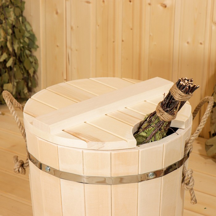 Запарник - ведро для бани и сауны, 12 л, липа, оцинкованная вставка, с крышкой, «Добропаровъ»