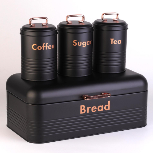 Набор хлебница металлическая 41,5*15,5*22,5 cм с банками для сыпучих 11,5*18,5 cм 3 шт черный