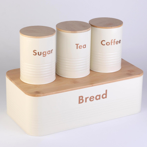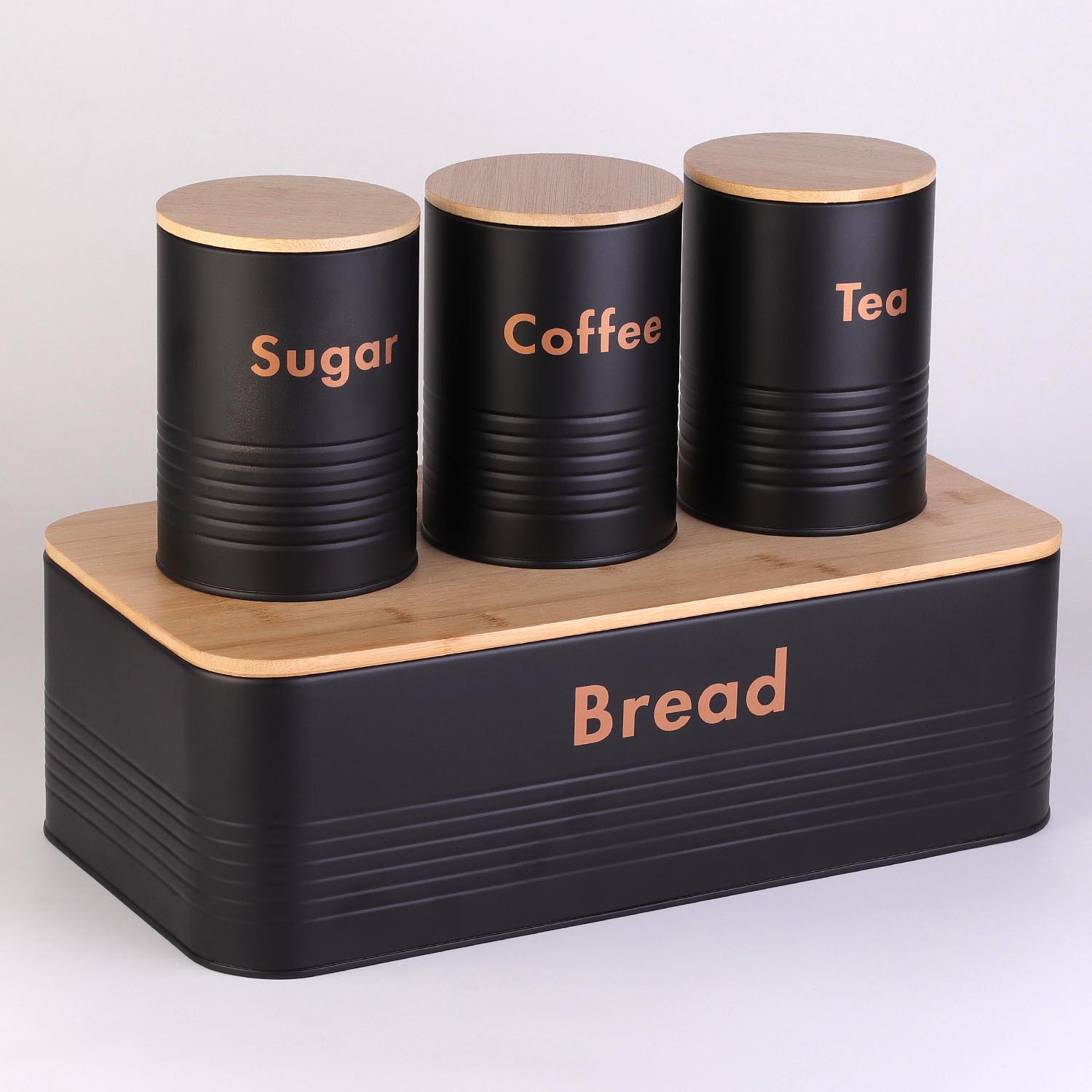 Набор хлебница металлическая 42,5*13,5*23 cм с банками для сыпучих 11,3*15,5 cм 3 шт черный