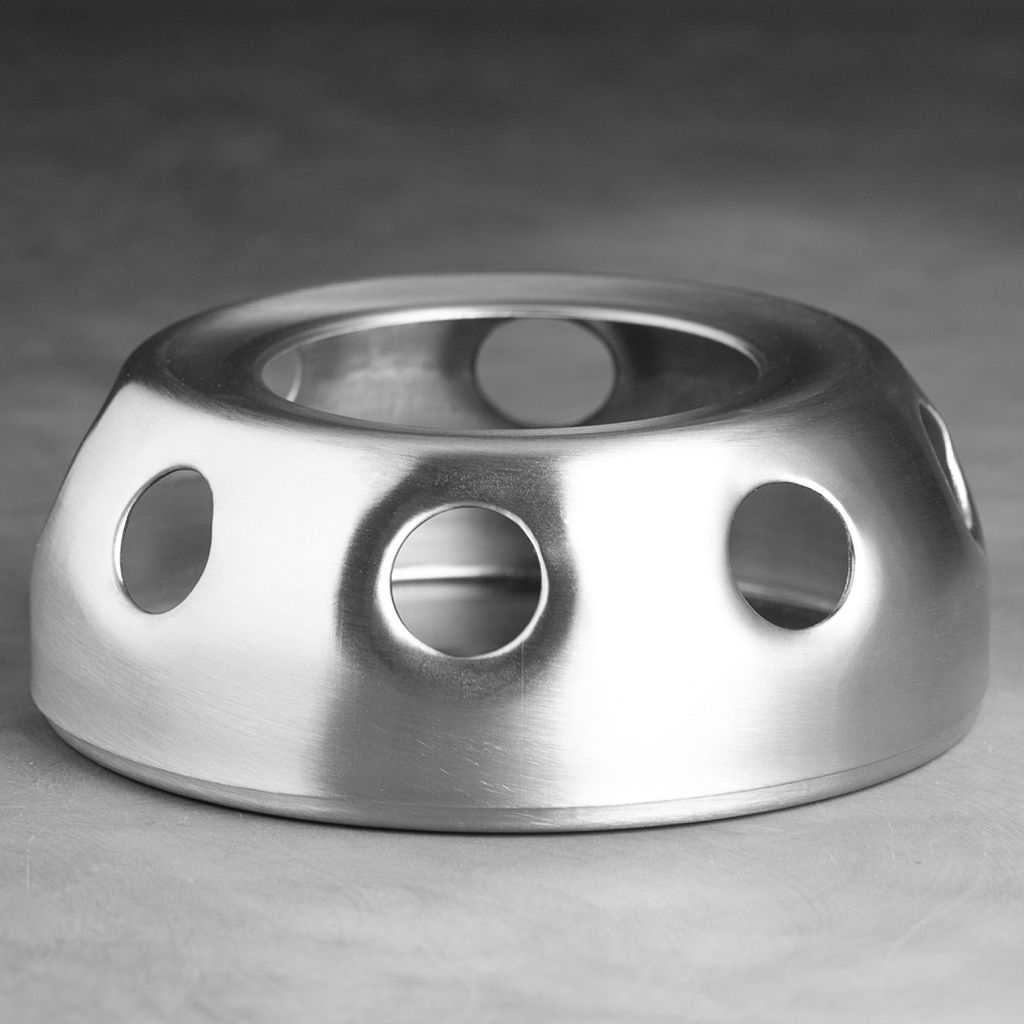 Металлическая горелка конической формы, плавно зауженная вверху, с 8 круглыми отверстиями по боковой поверхности, высотой 5 см, диаметр основания 14,5 см