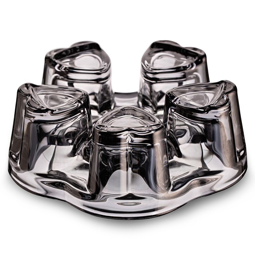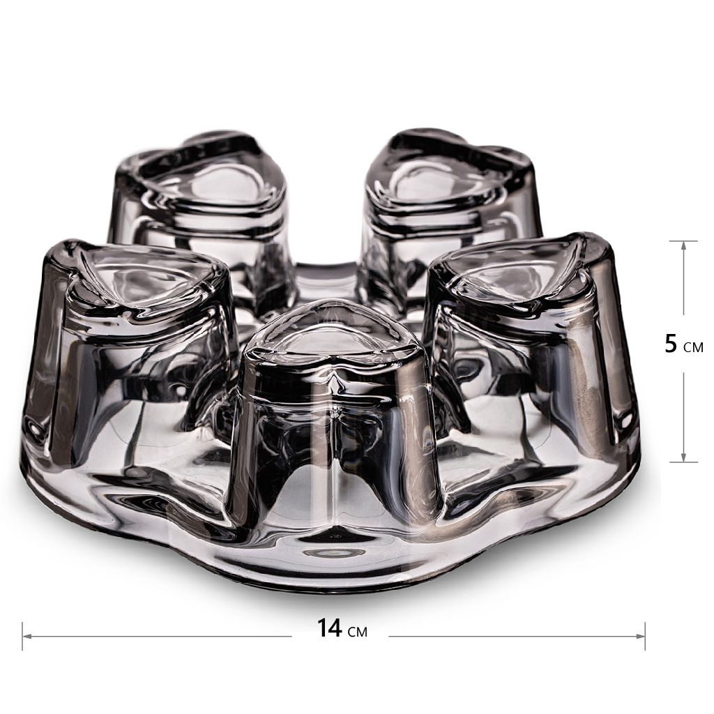 Подставка/горелка из толстого стекла представляет собой пятиугольник со сглаженными углами, из которых выступают объемные "сердца" Диаметр 140 мм, Высота 53 мм, Цвет графит