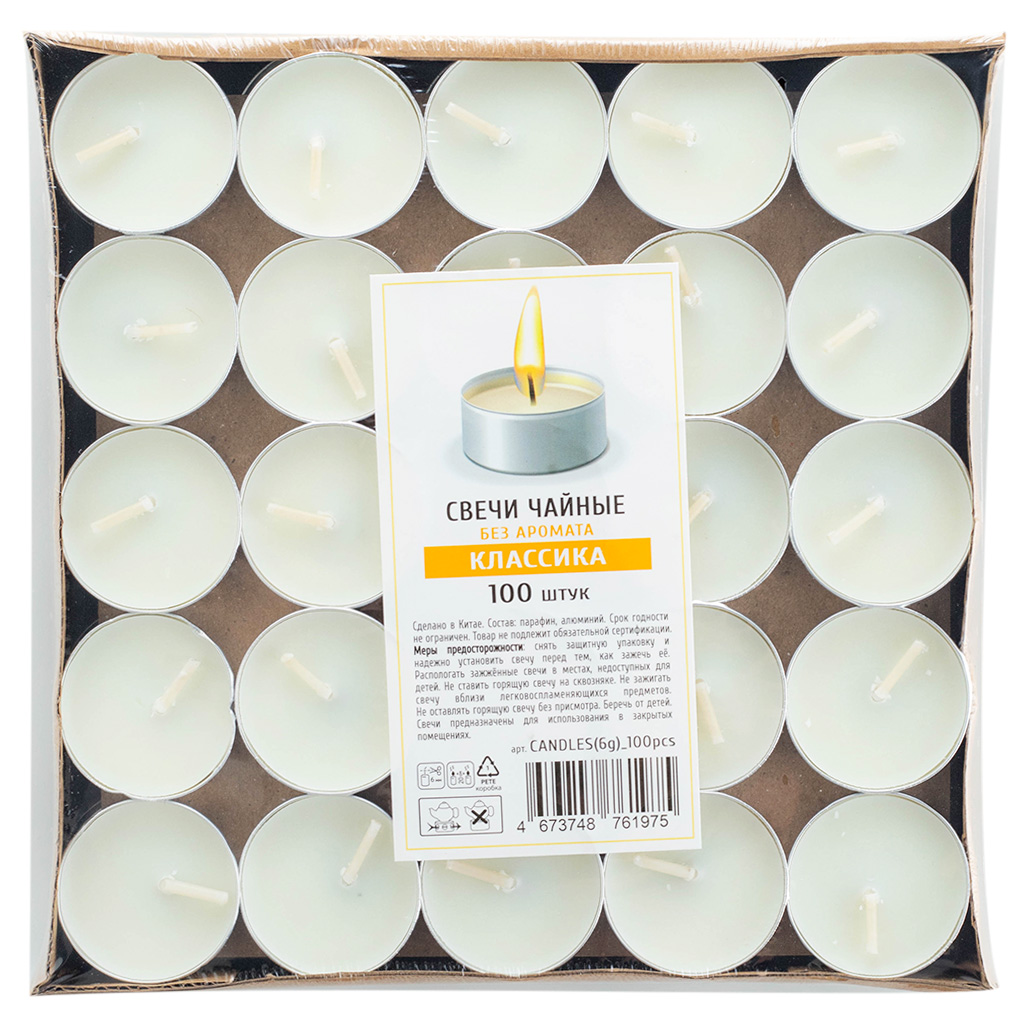Свечи чайные в гильзе классика (6 г) 100шт/уп ""