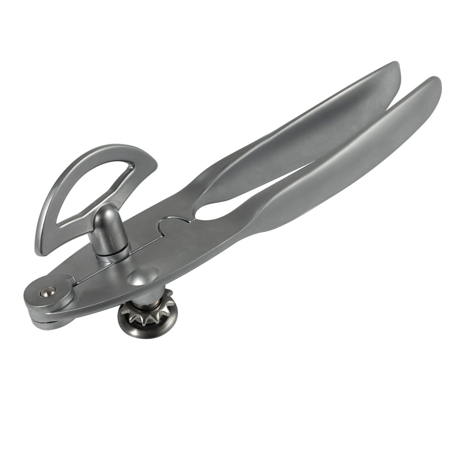 Открывалка выполнена из цинкового сплава. У изделия никелированная матовая поверхность. Лезвие выполнено из нержавеющей стали. Размер: 17,1 х 4,2 х 6,6 см. Подойдет для открывания консервных банок.