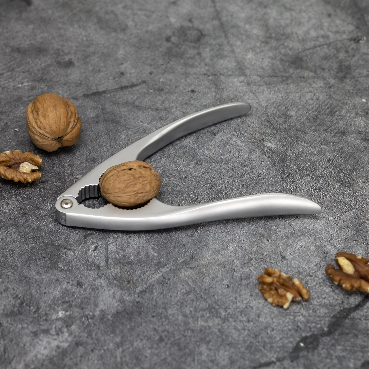 Орехокол выполнен из цинкового сплава. У изделия никелированная матовая поверхность.