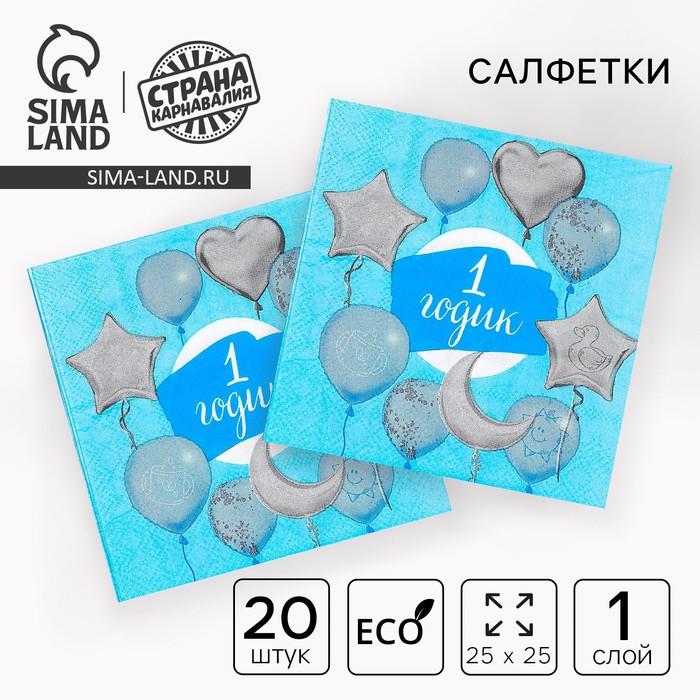 Салфетки бумажные «1 годик», 25×25 см, набор 20 шт.