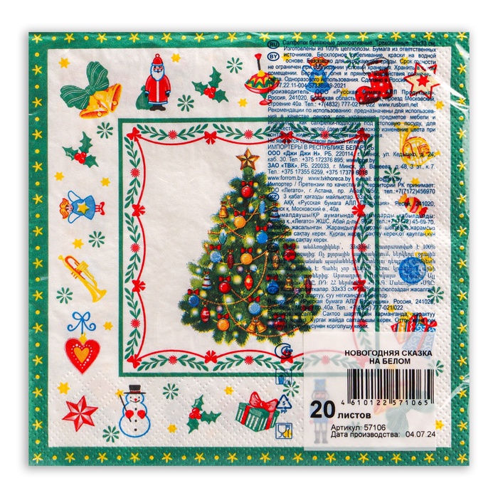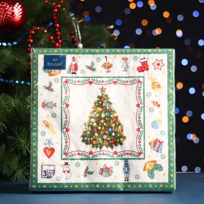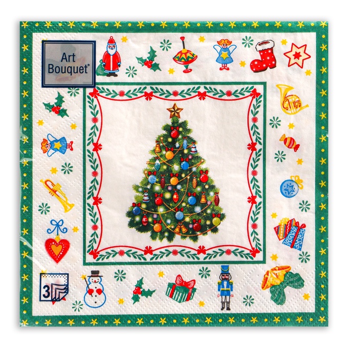 Салфетки бумажные Art Bouquet «Новогодняя сказка на белом», 3 слоя, 33×33 см, 20 шт.
