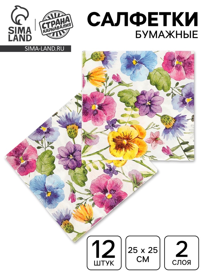 Салфетки бумажные двухслойные «Полевые цветы», 33×33, 12 шт.