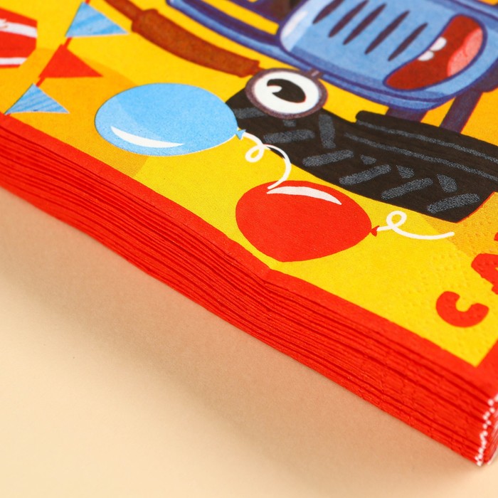 Салфетки бумажные "С днём рождения", 33х33 см, 20 штук, 3-х слойные, Синий трактор