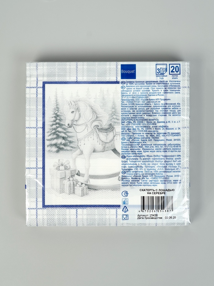 Салфетки бумажные трёхслойные «Скатерть с лошадью на серебре», 33×33, 20 шт.