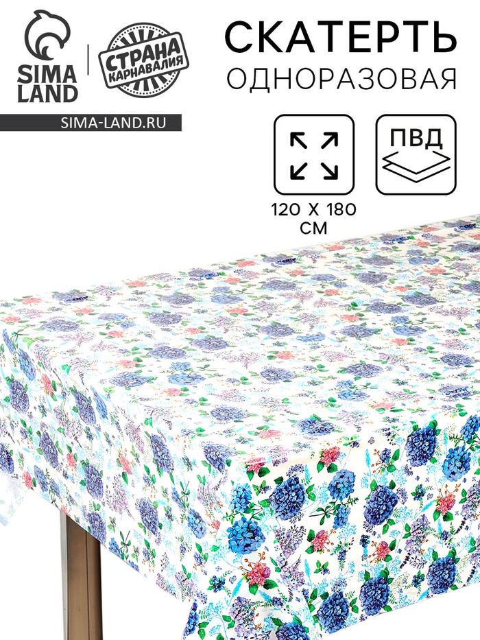 Скатерть одноразовая для пикника «Гортензия» 120×180 см, ПВД