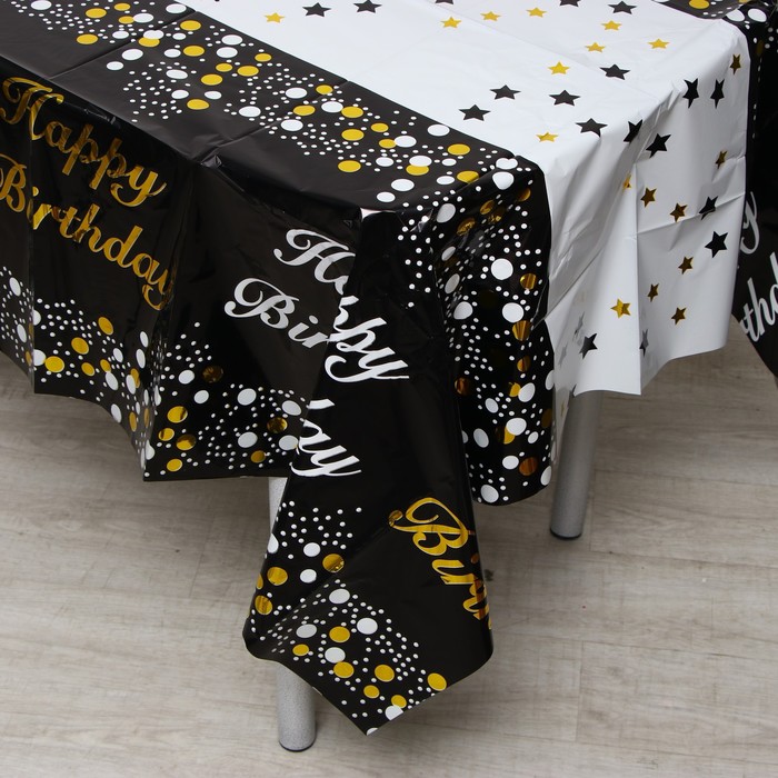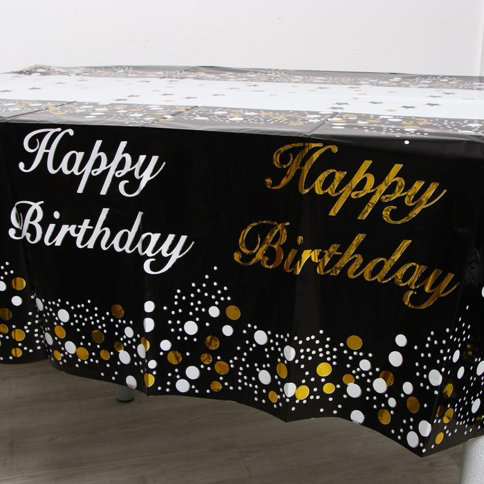 Скатерть «С днём рождения», 137×183 см, чёрная