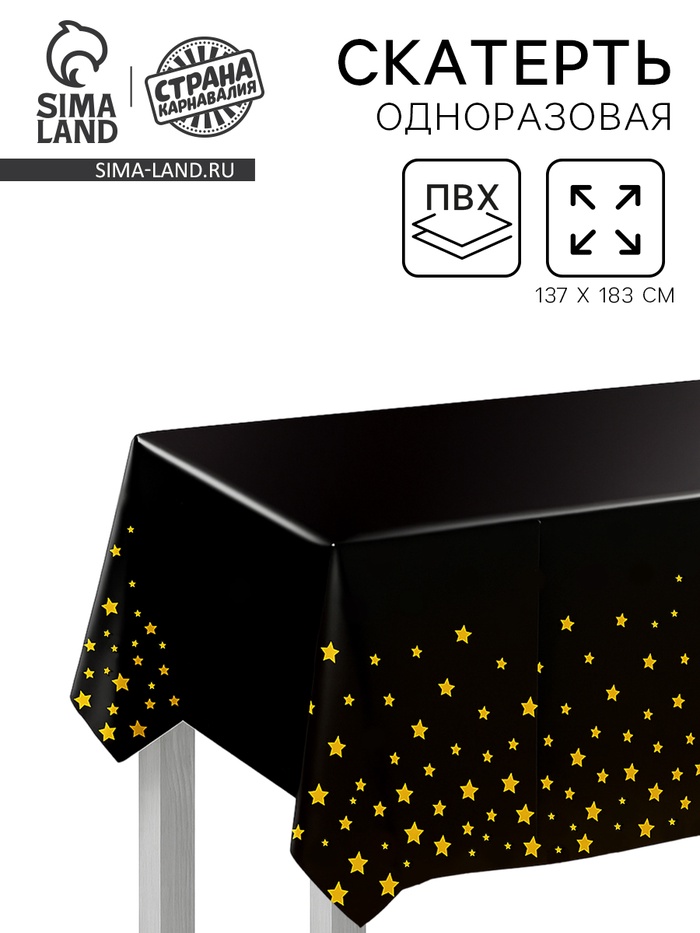Скатерть одноразовая на стол «Звёзды», 137×183 см, цвет чёрный