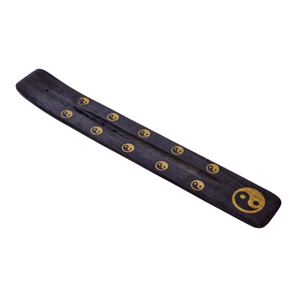 Оригинально смотрится подставка под благовония в черно-золотом оформлении. Символ Инь-янь придает особый смысл изделию. Подставка станет прекрасным и полезным подарком для любителей ароматерапии. Она сделана в форме лыжи, что обеспечивает удобство ее применения. Подставка подходит для удержания и хранения благовоний. Это могут быть ароматические палочки и конусы. В качестве основного компонента применяется древесина. Дизайн изделия придает элементу оригинальности и позволяет его использовать для оформления интерьеров.