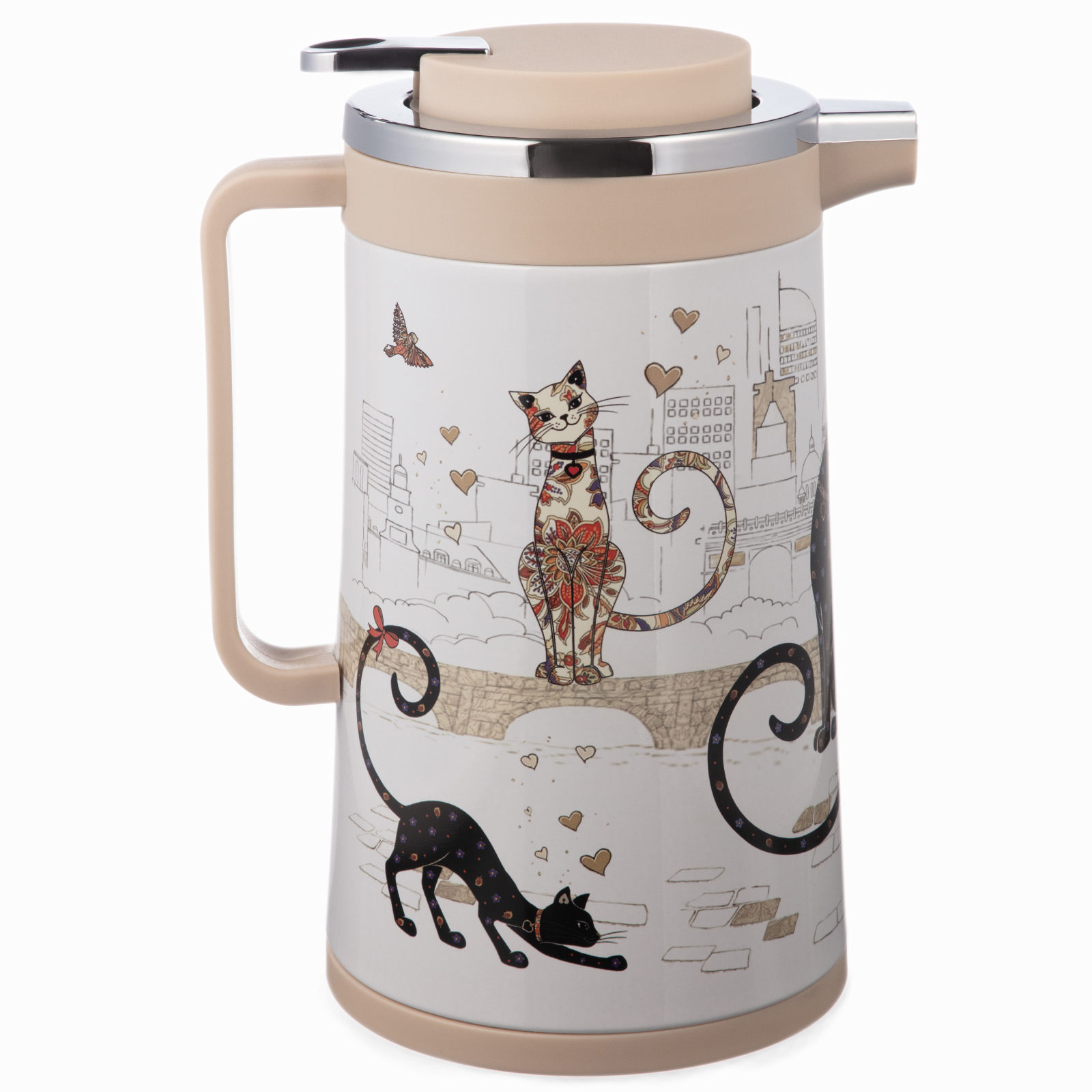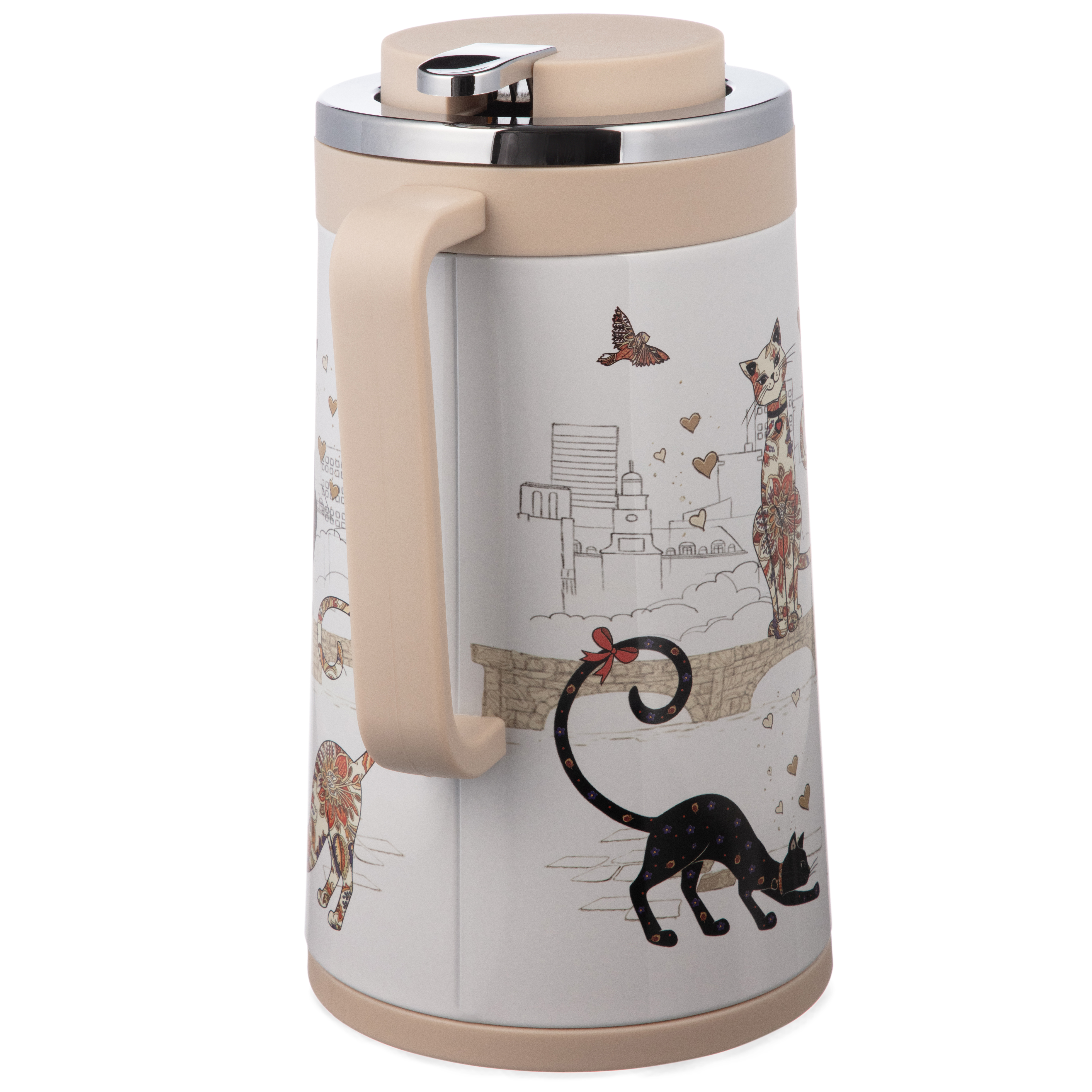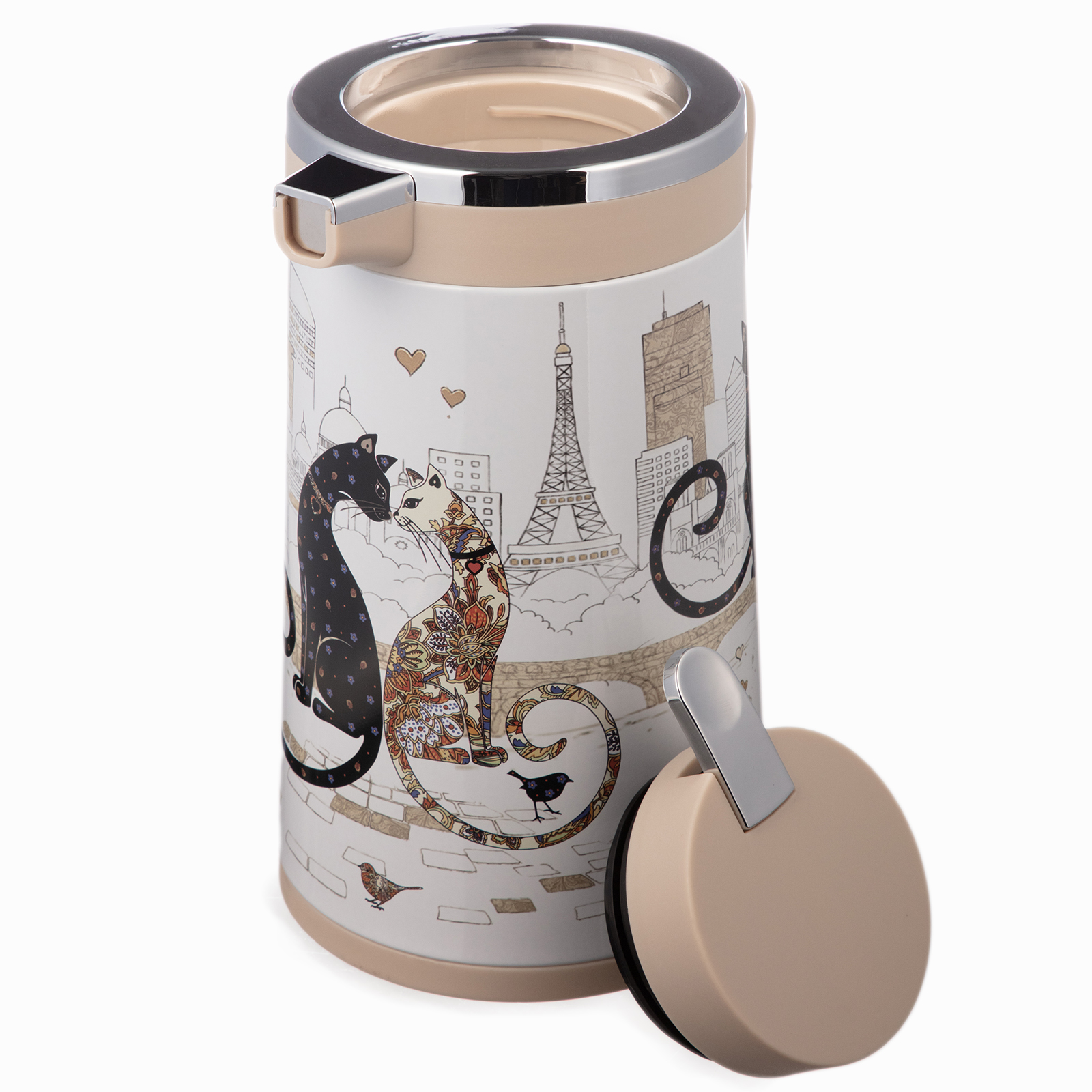 ТЕРМОС СО СТЕКЛ. КОЛБОЙ, 950 МЛ, КРЫШКА С КЛАПАНОМ, СЕРИЯ "ПАРИЖСКИЕ КОТЫ", СОХРАНЯЕТ ТЕМП-РУ ДО 24Ч