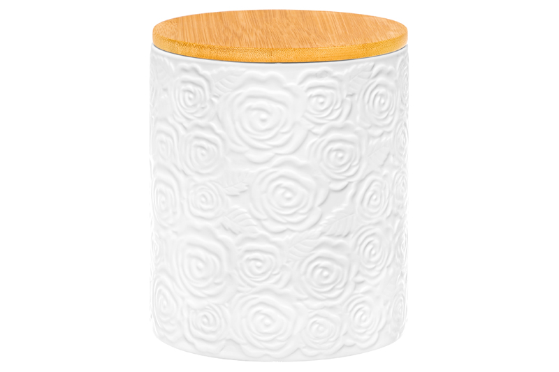 Банка из серии «Розы» от Elan Gallery послужит для организации хранения сыпучих продуктов на вашей кухне. Размер ёмкости – 13х13х16 см, объём – 1,2 литра. Выполнена из высококачественного белого фарфора. Он не впитывает цвет продуктов и легко отмывается, благодаря чему надолго сохраняет свою белизну. Поверхность изделия украшают рельефные узоры в виде пышных бутонов роз. Крышка выполнена из натурального бамбука и оснащена силиконовым уплотнителем. Ёмкость подойдёт для хранения разнообразных сыпучих продуктов. Заполните её сахаром и солью, специями и приправами, чтобы во время приготовления и приёма пищи всё необходимое было под рукой. Засыпьте внутрь чай или кофе, чтобы в любой момент заварить свежий напиток. Храните в ней крупы и макаронные изделия, ягоды, орехи и сухофрукты. Заполните контейнер сладостями и закусками: конфетами, леденцами, пряниками или печеньем. Подайте баночку к столу, чтобы идеально дополнить чайную сервировку! Герметичная бамбуковая крышечка защитит ваши продукты от попадания грязи и пыли. Не рекомендуется применять абразивные моющие средства. Без бамбуковой крышки подходит для использования в посудомоечной машине и микроволновой печи. Бамбук нельзя замачивать! Поставляется в дизайнерской картонной коробке – благодаря ей вам не потребуется дополнительная подарочная упаковка. Фарфоровая сервировочная посуда будет оригинальным подарком для хозяйки, ценящей не только практичность, но и привлекательность. Серия «Розы» от бренда Элан Галерея станет украшением любого кухонного инвентаря и позволит собрать красивый сервиз в едином стиле!
