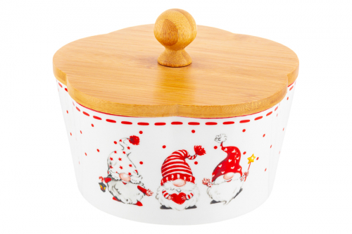 Банка д/хранения 630 мл 10*10*10 см "Узоры" с бамб. крышк. с сил. упл., белый