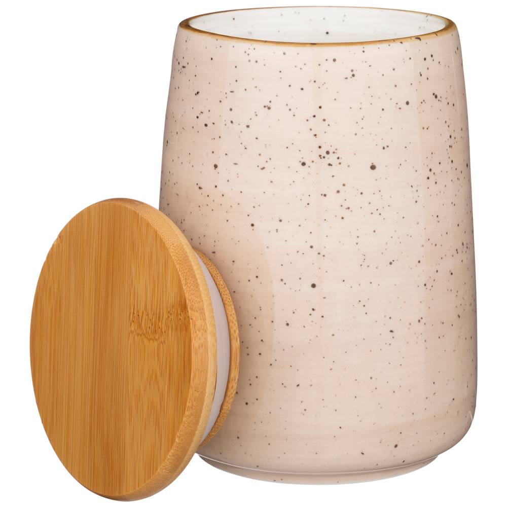 БАНКА С ДЕРЕВЯННОЙ КРЫШКОЙ BRONCO "NATURE" 17*12 СМ 1240 МЛ КРЕМОВАЯ (КОР=16ШТ.)