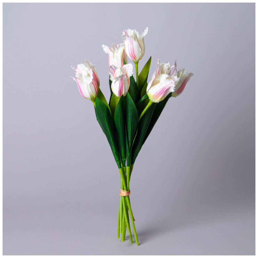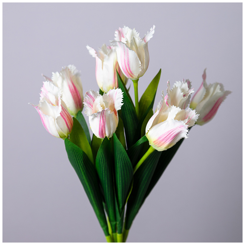 БУКЕТ ИСКУССТВЕННЫЙ ИЗ 9 ТЮЛЬПАНОВ ДЛИНА=39СМ , ЦВЕТ КРЕМОВО-РОЗОВЫЙ МАЛ.УП.=24ШТ