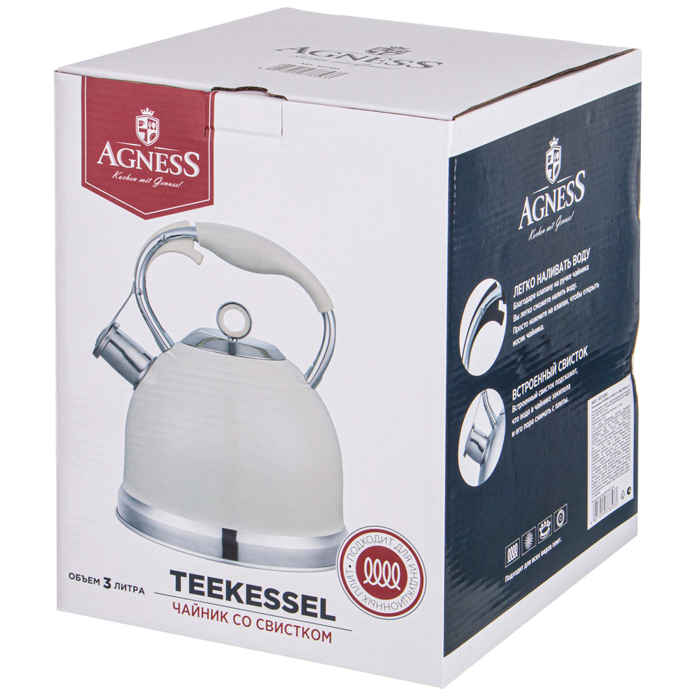 ЧАЙНИК AGNESS СО СВИСТКОМ, 3Л C ИНДУКЦИОН. КАПСУЛЬНЫМ ДНОМ ЦВЕТ: МОЛОЧНЫЙ