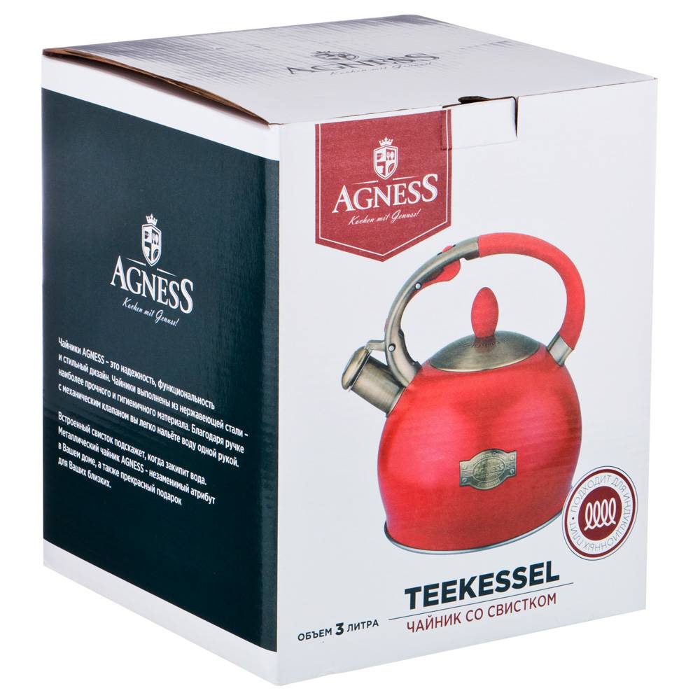 • Благодаря внешнее жаропрочному покрытию и стильному дизайну чайник AGNESS украсит любую кухню