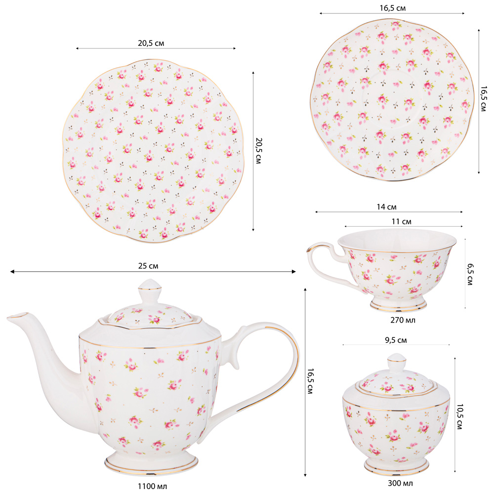 ЧАЙНЫЙ СЕРВИЗ LEFARD "SONNET IN ROSES" НА 6 ПЕР. 20 ПР. 1100/300/270 МЛ/20,5 СМ (КОР=2НАБ.)