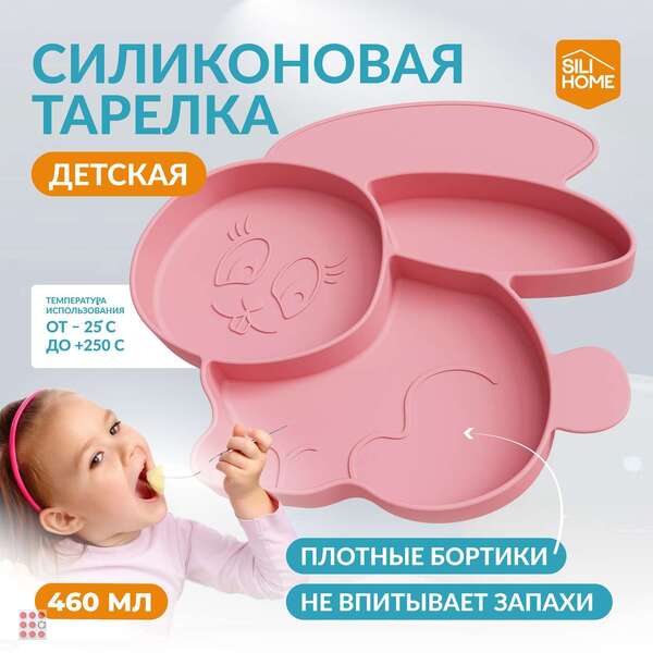 Силиконовая тарелка SILIHOME Зайка с секциями в объеме 460 мл.