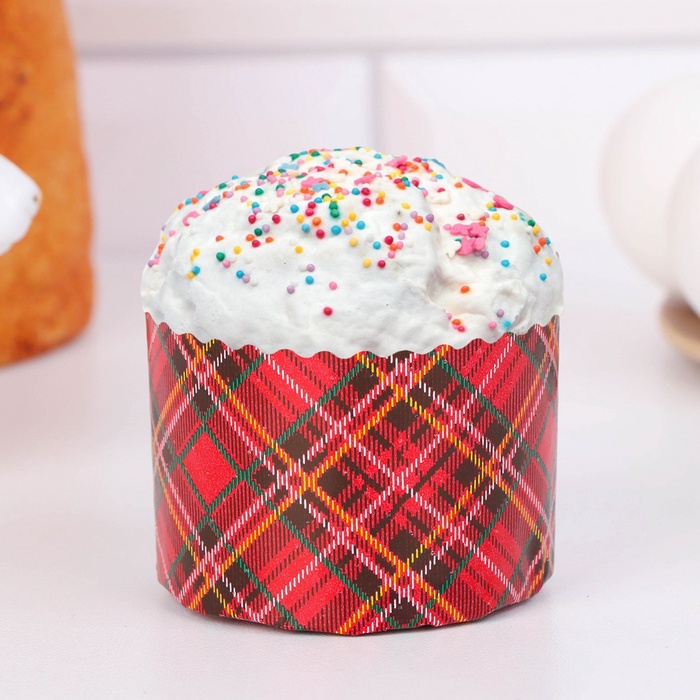Форма для выпечки кулича бумажная Деко-про «Красная клетка», 6×4.5 см, одноразовая, красная