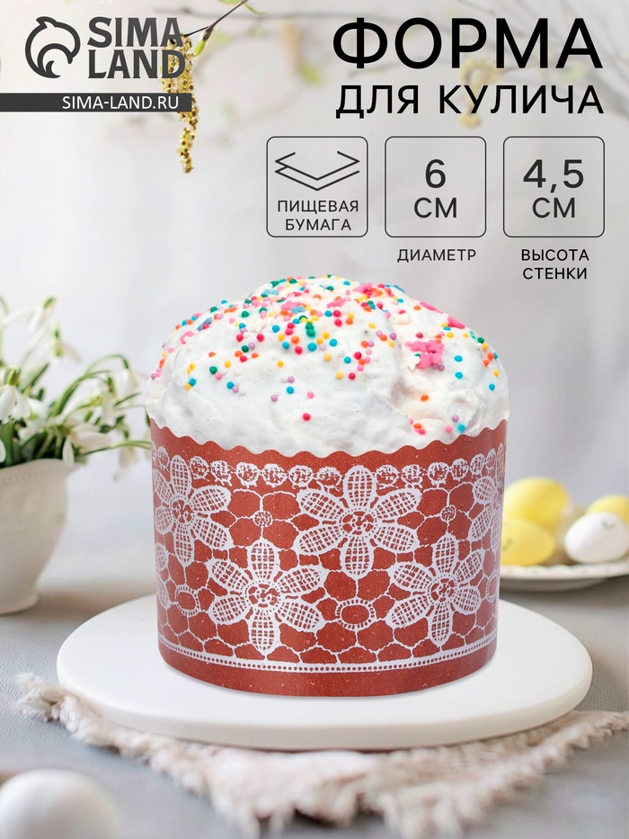 Форма для выпечки кулича бумажная Деко-про «Кружево», одноразовая, 6×4.5 см, МИКС