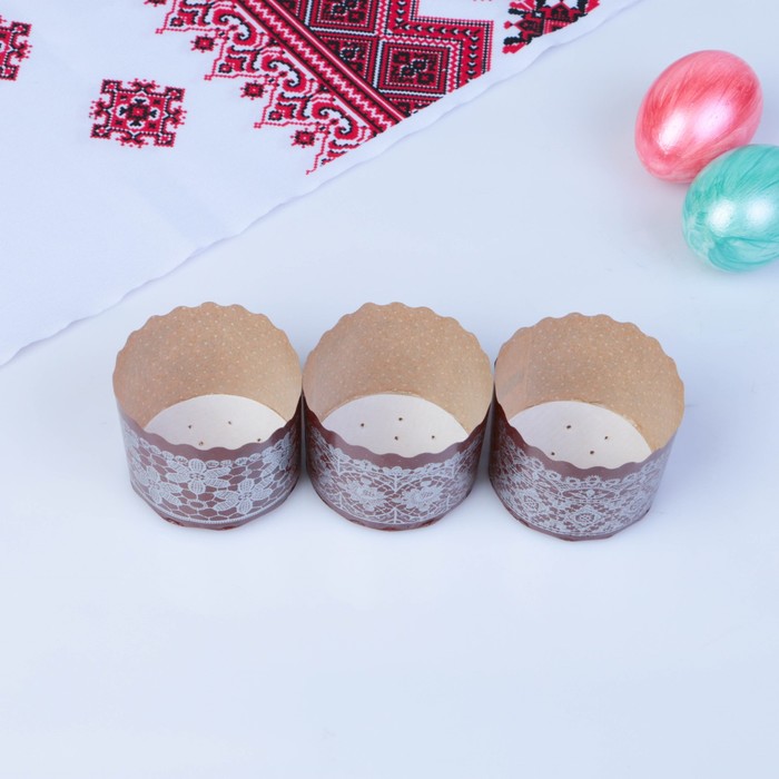 Форма для выпечки кулича бумажная Деко-про «Кружево серебряное», одноразовая, 6×4.5 см, МИКС