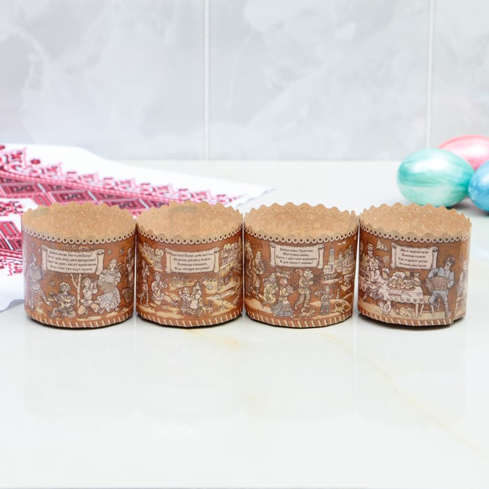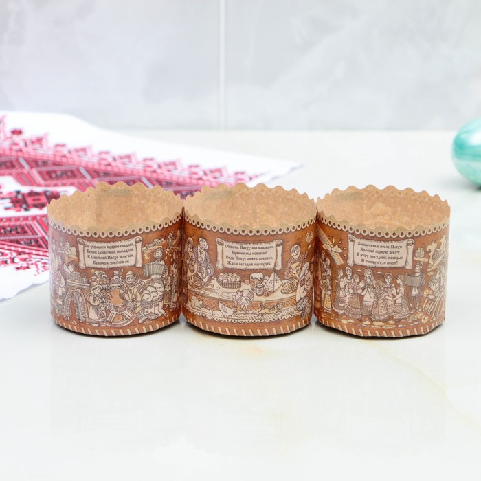 Форма для выпечки кулича бумажная «Лубяная», 7×6 см, одноразовая, МИКС