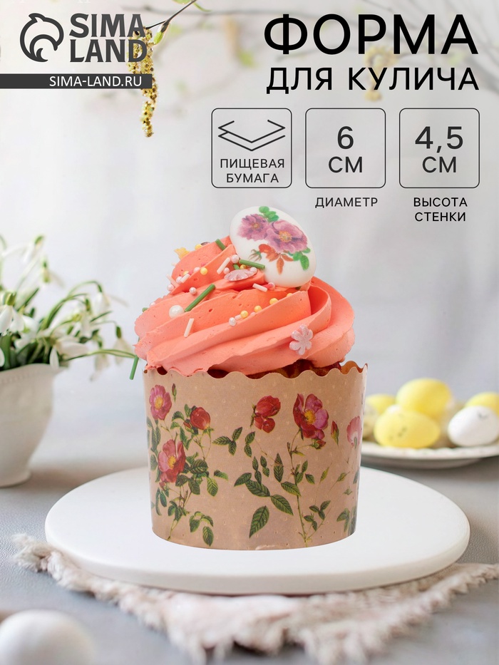 Форма для выпечки кулича бумажная «Розы», одноразовая, 6×4.5 см, МИКС