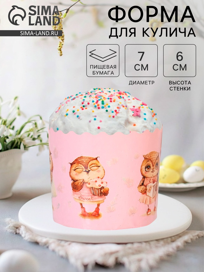 Форма для выпечки кулича бумажная Деко-про «Совушки», одноразовая, 7×6 см, МИКС