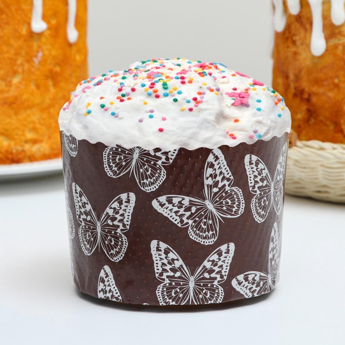 Форма для выпечки кулича бумажная Деко-про «Бабочки», одноразовая, 11×8.5 см, коричневая