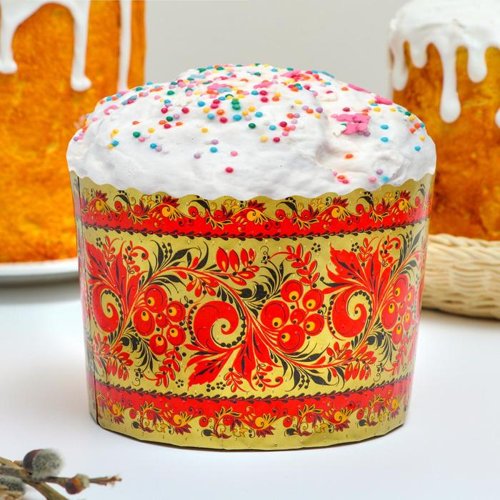 Форма для выпечки кулича бумажная Деко-про «Хохлома», одноразовая, 13.4×10 см, МИКС
