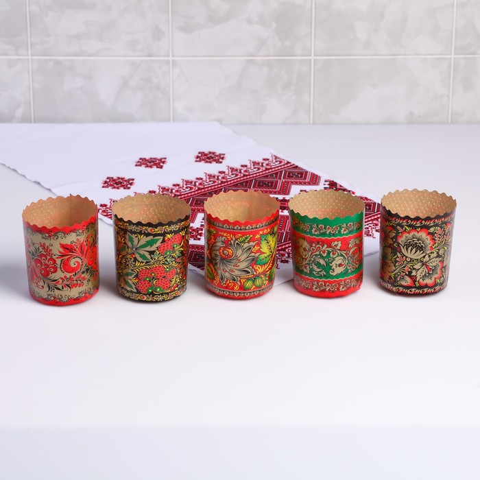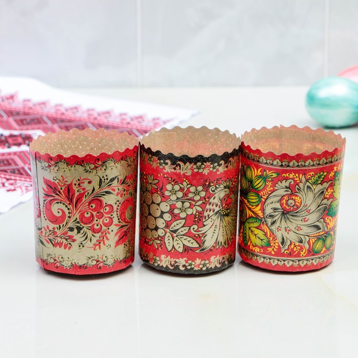 Форма для выпечки кулича бумажная Деко-про «Хохлома», одноразовая, 7×8.5 см, МИКС
