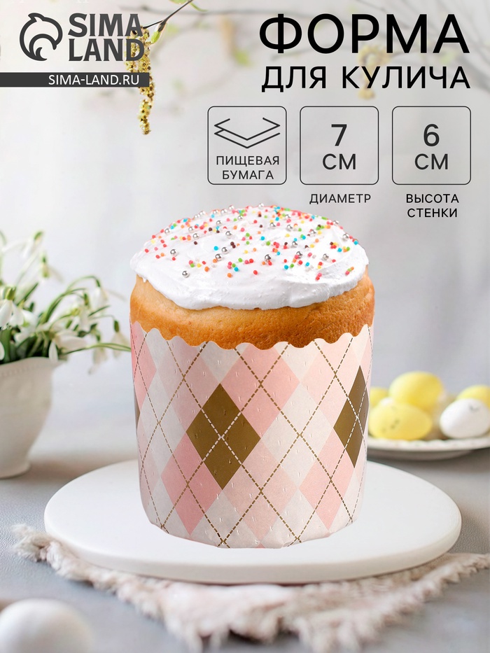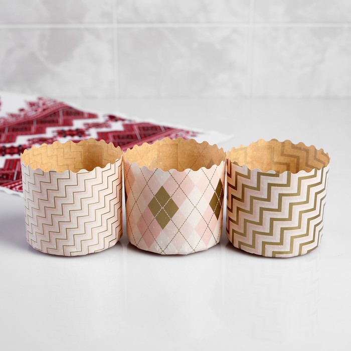 Форма для выпечки кулича бумажная Деко-про «Ромбики», одноразовая, 7×6 см, МИКС