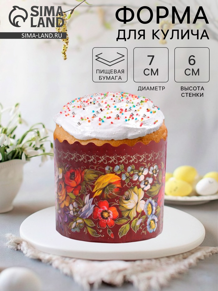 Форма для выпечки кулича бумажная «Жостово», 7×6 см, одноразовая, МИКС