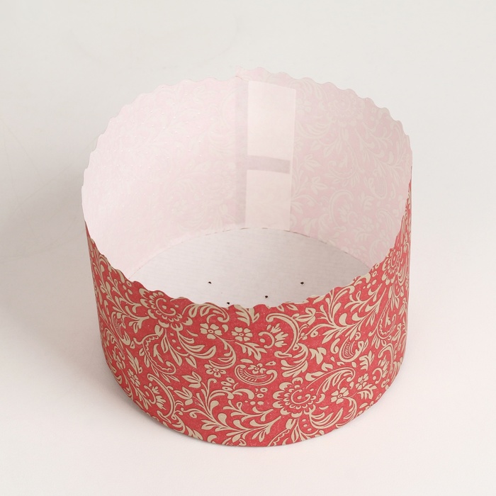 Форма для выпечки кулича бумажная Деко-про «Флора красная», одноразовая, 13.4×9 см, красная