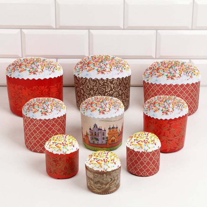 Формы для выпечки кулича бумажные Деко-про «Красная Пасха», набор 9 видов по 1 штуке, одноразовые, разноцветные