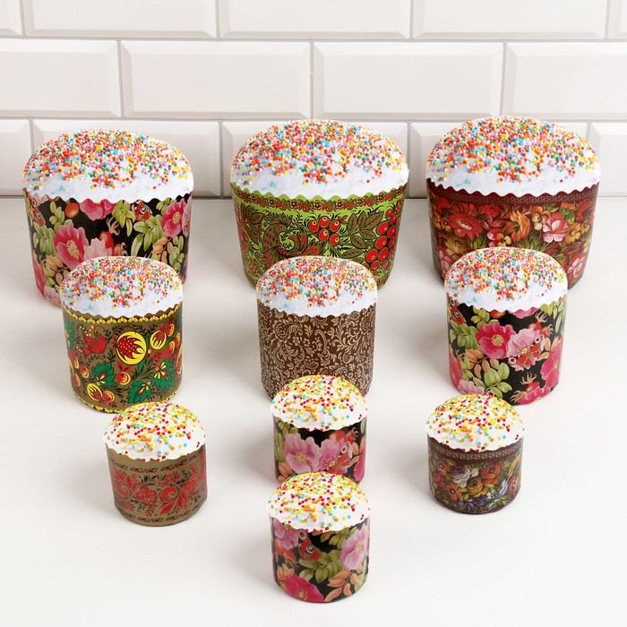 Формы для выпечки кулича бумажные Деко-про «Узоры», набор 9 видов по 1 штуке, одноразовые, разноцветные