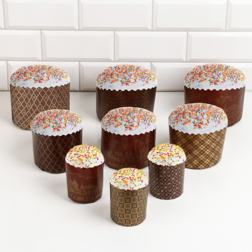 Формы для выпечки кулича бумажные Деко-про «Узоры», набор 9 видов по 1 штуке, одноразовые, разноцветные