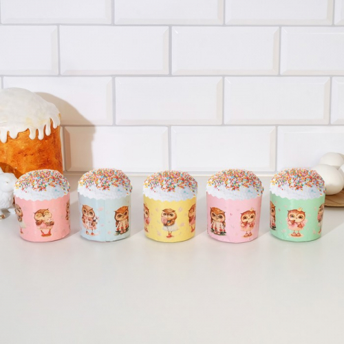 Форма для выпечки кулича бумажная Деко-про «Совушки», одноразовая, 7×6 см, МИКС