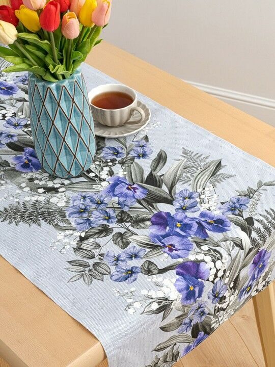 Дорожка-элемент декора, позволяющий сделать сервировку стола более оригинальной и интересной, наполнит свежестью и украсит Ваш интерьер. Дорожки очень популярны в современном мире, поэтому мы предлагаем Вам широкий ассортимент расцветок и дизайнов. Изделия выполнены из плотного материала-диагонали, плотностью 240 г/м2. Дорожки можно расположить вдоль стола или поперек, используя одну или сразу несколько, комбинировать со скатертями. Дорожки не только сморятся стильно и нарядно, но и защищают стол от загрязнений и царапин, сохраняют столешницу от перегрева. Дорожки имеют приемлемую стоимость и будут по карману любой хозяйке. Сервировка стола с дорожкой - стильное решение для Вашего дома!