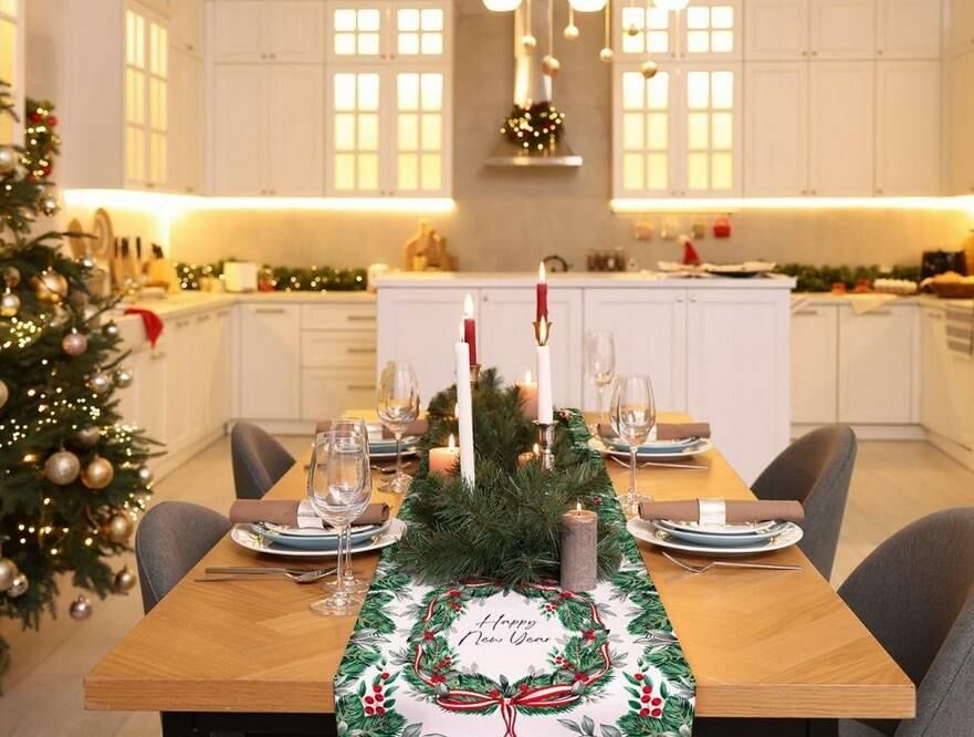 Дорожка столовая "Зимняя ягода" 45*150 см. хлопок 100%