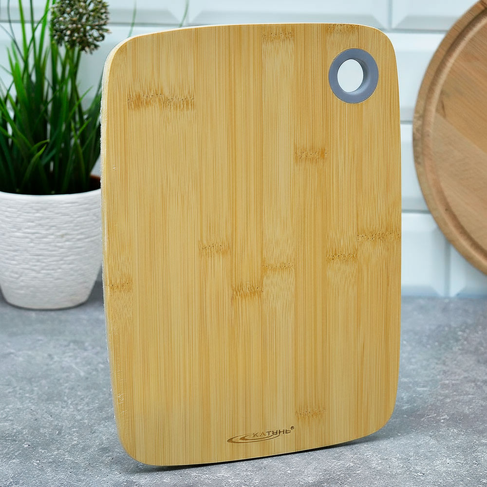 Доска разделочная бамбук 280*210*10мм прямоугольная с силиконовой ручкой