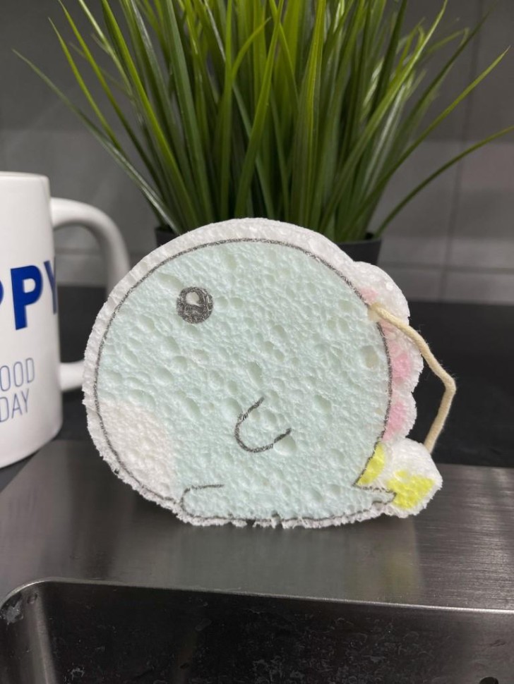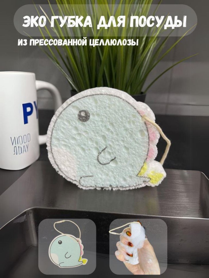Губка изготовлена из целлюлозы. При первом намокании она увеличивается в размерах и сохраняет свою новую форму, что делает ее удобной для использования. Такой аксессуар станет ярким и оригинальным дополнением вашей кухни, привнося не только практичность, но и хорошее настроение в повседневные дела.