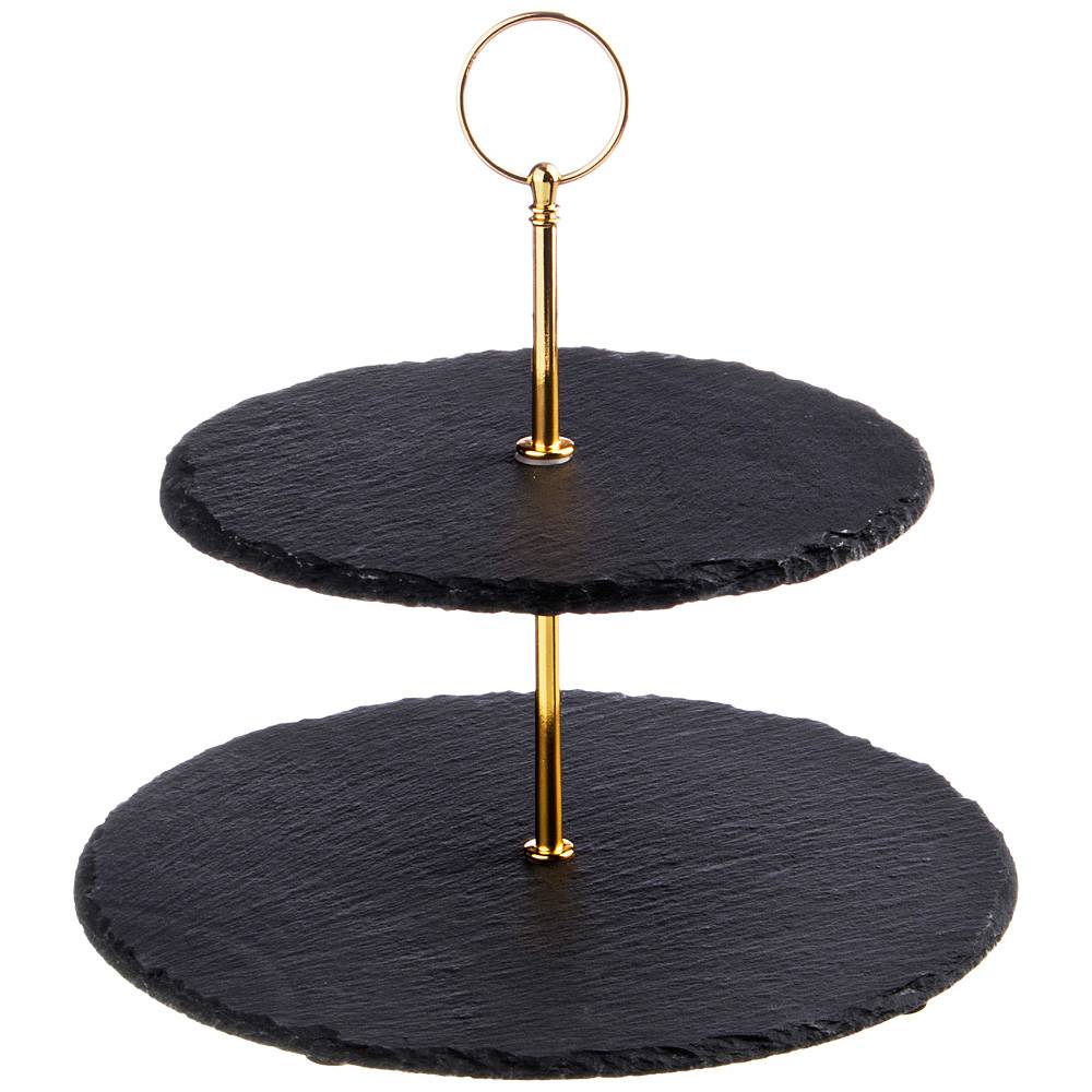 ЭТАЖЕРКА AGNESS "ЧЕРНОЕ ЗОЛОТО" СЕРВИРОВОЧНАЯ 2-Х ЯРУСНАЯ ДИАМ. 25*20 СМ ВЫСОТА 24 СМ (КОР=10ШТ.)